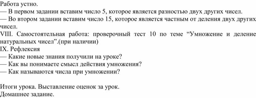 VIII. Самостоятельная работа: проверочный тест 10 по теме “Умножение и деление натуральных чисел”.(при наличии)
