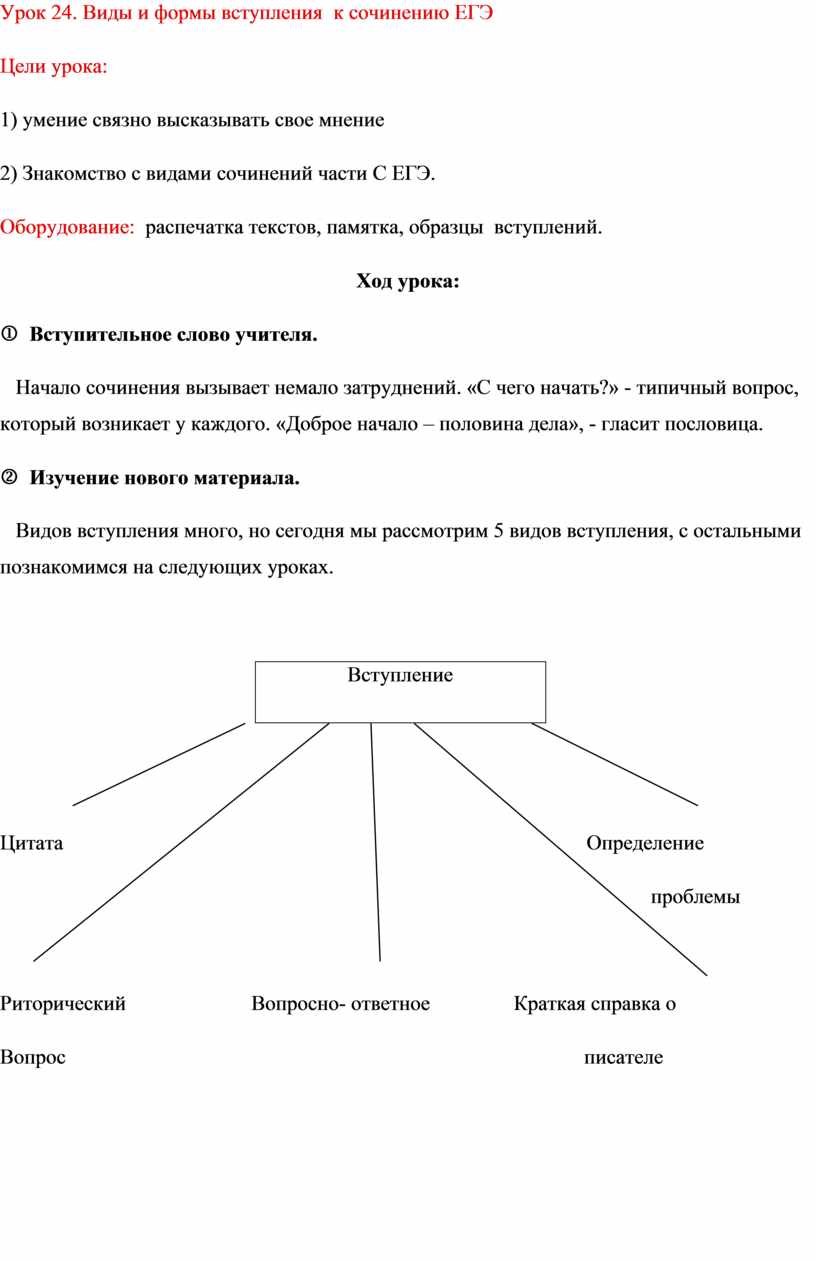 Урок 24. Виды и формы вступления к сочинению ЕГЭ