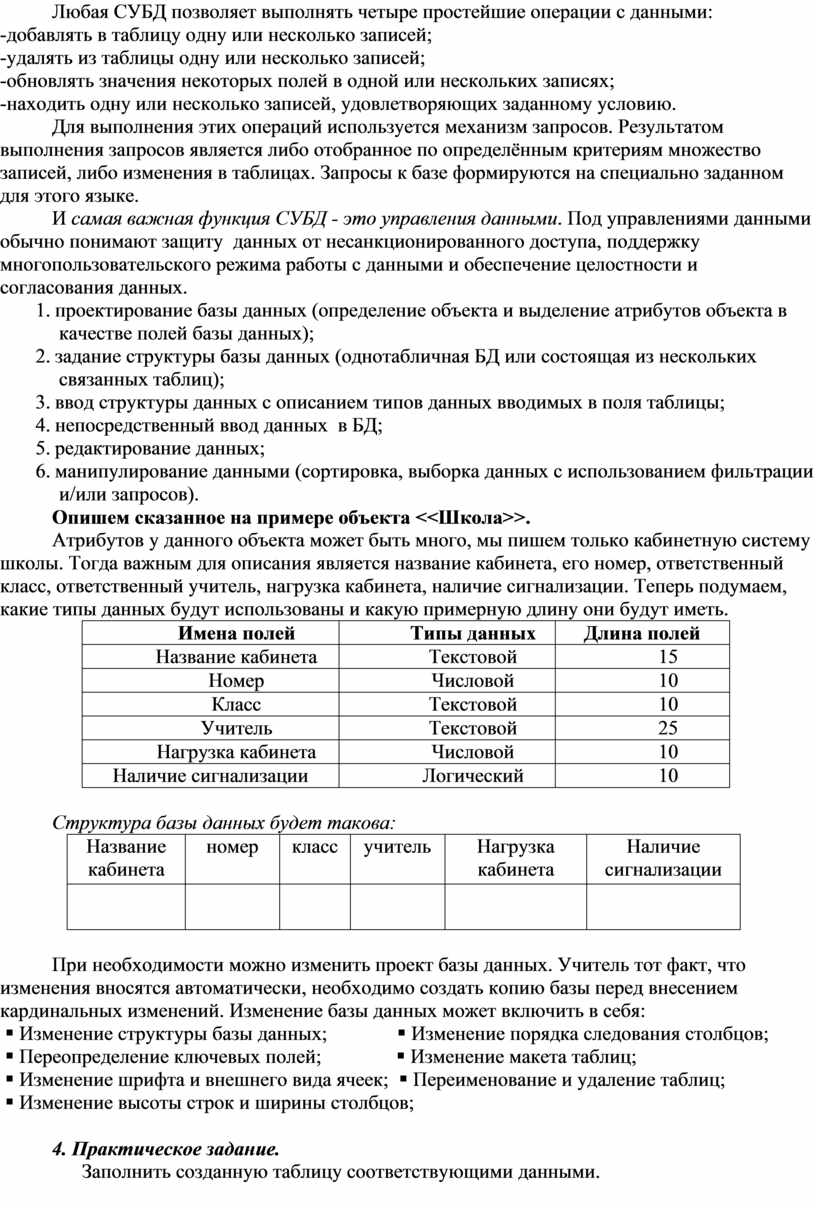 Любая СУБД позволяет выполнять четыре простейшие операции с данными:
