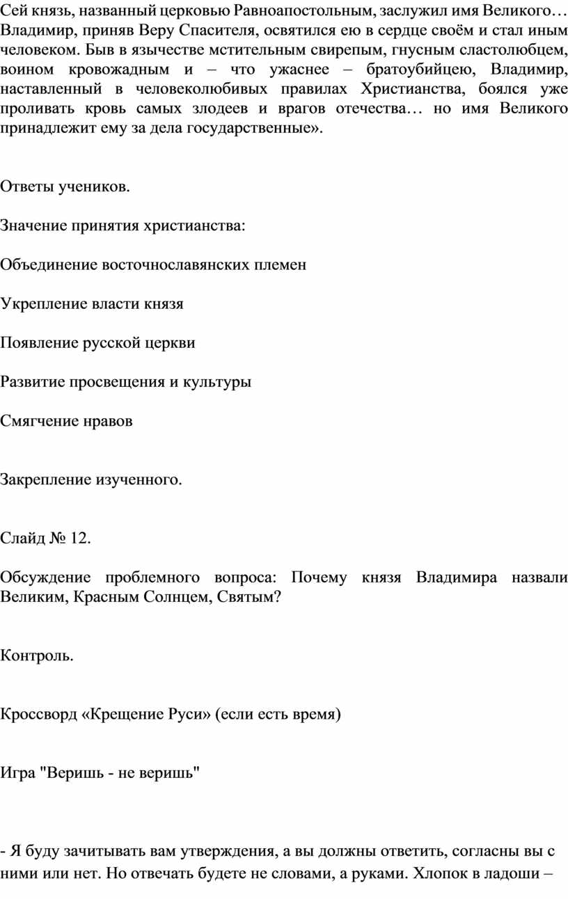 - С этим вы познакомитесь в учебнике, прочитав пункт 3 «Крещение Руси».