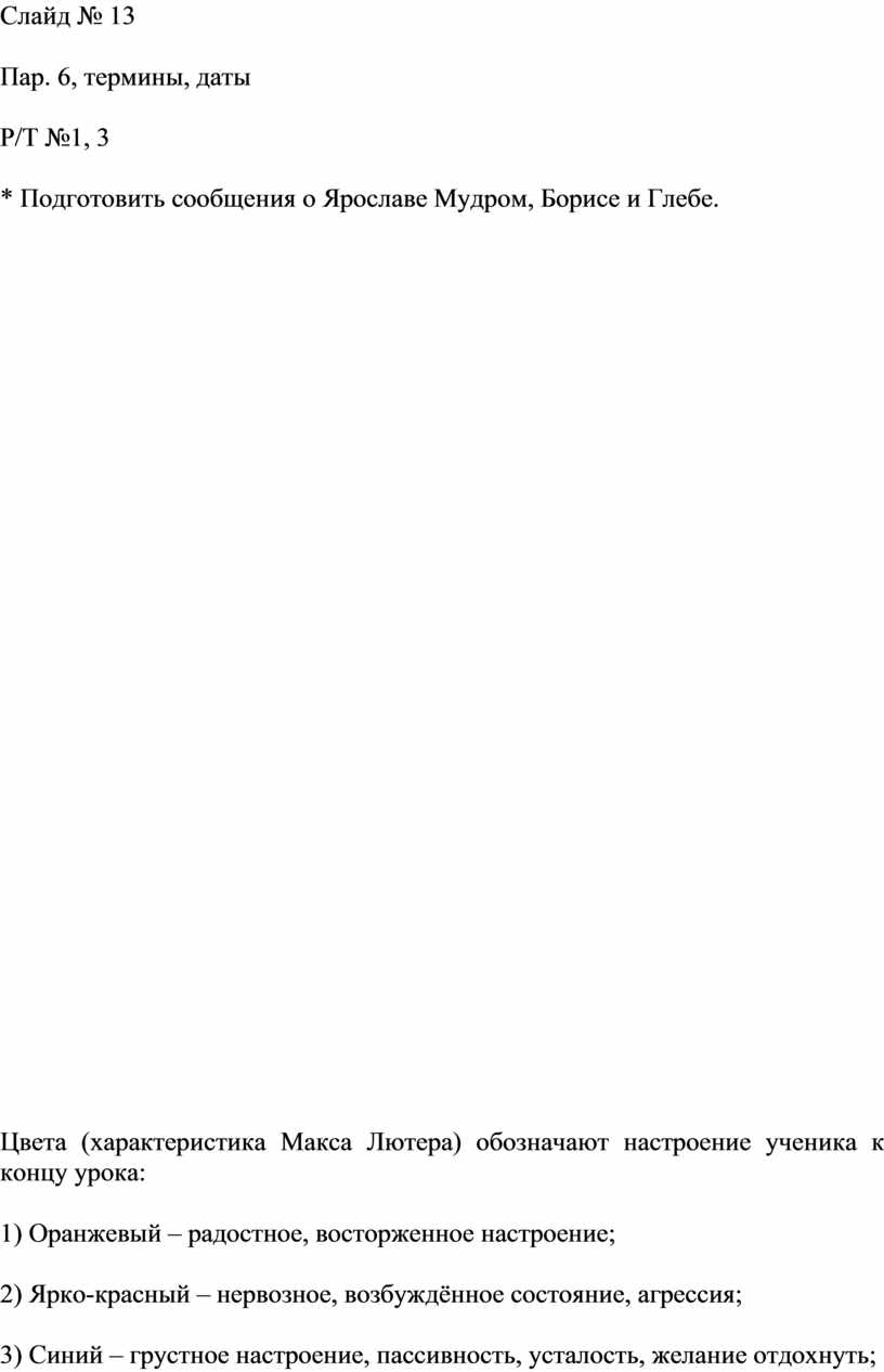 Цвета (характеристика Макса Лютера) обозначают настроение ученика к концу урока: