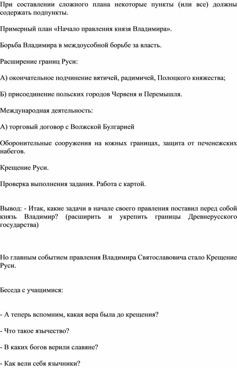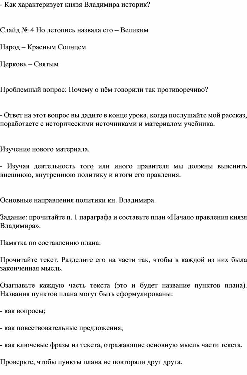 Задание: прочитайте п. 1 параграфа и составьте план «Начало правления князя Владимира».