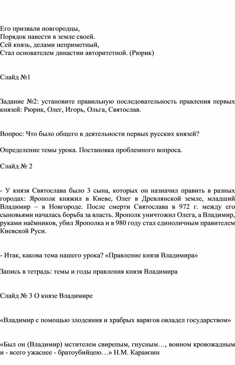 - Итак, какова тема нашего урока? «Правление князя Владимира»