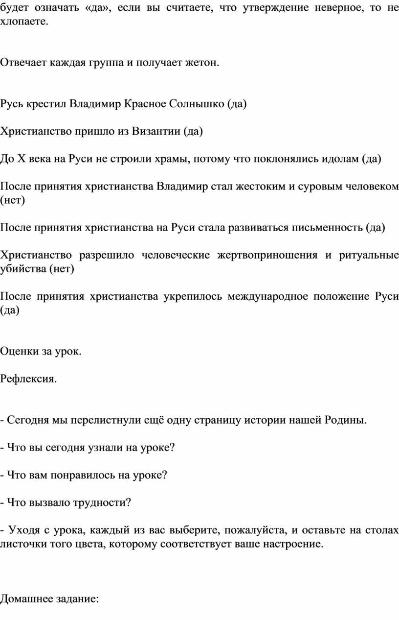Слово учителя: Да, действительно, процесс крещения Руси не везде шёл мирно и даже с оружием в руках. Люди не хотели расставаться со своими верованиями и не понимали новой религии. Поэтому многие продолжали исповедовать язычество ещё до 12 века. Но и по сей день сохранились языческие традиции и праздники.