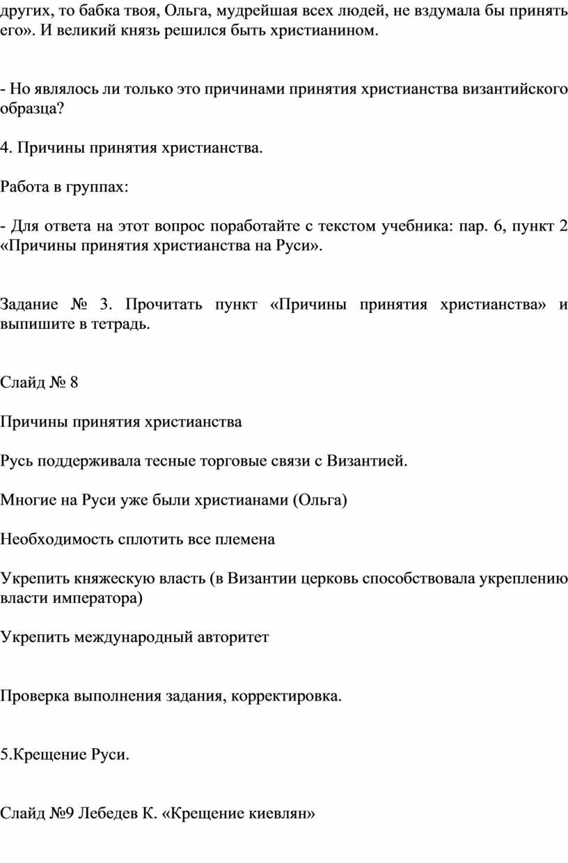 Задание № 3. Прочитать пункт «Причины принятия христианства» и выпишите в тетрадь.
