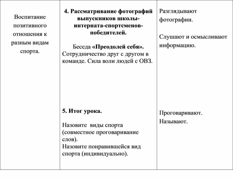 Воспитательная задача: Взаимосвязь видов спорта и людей с ОВЗ.
