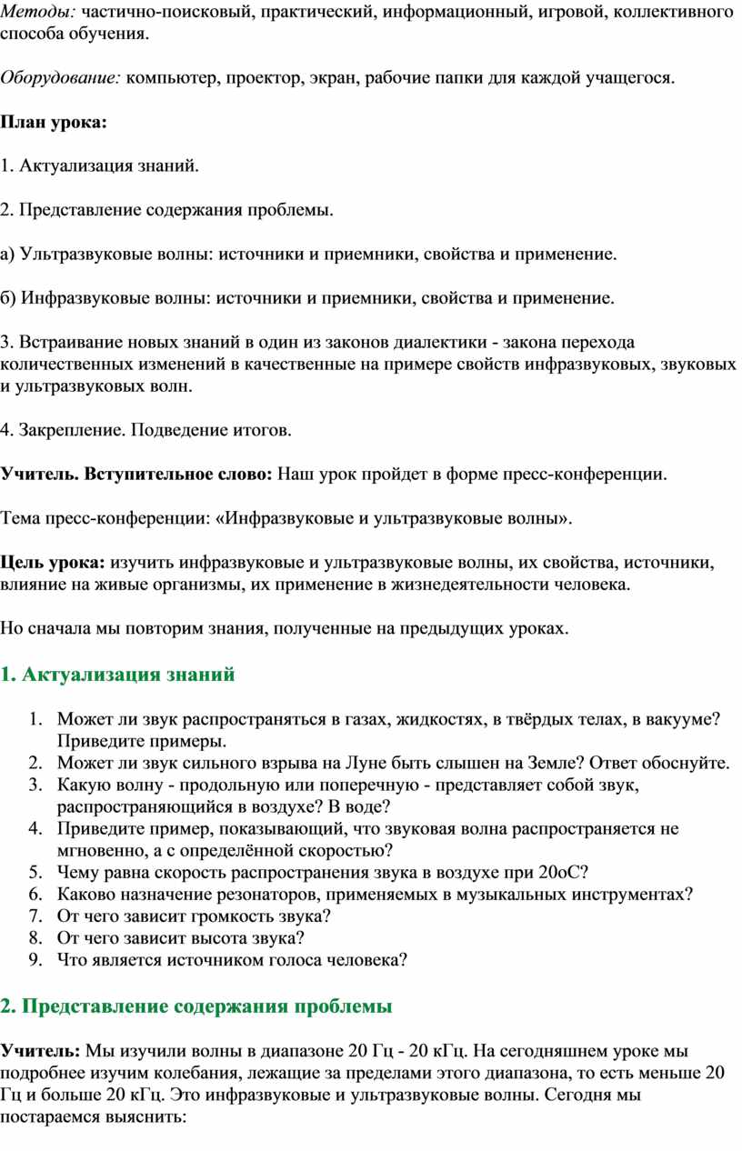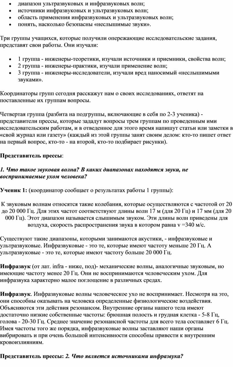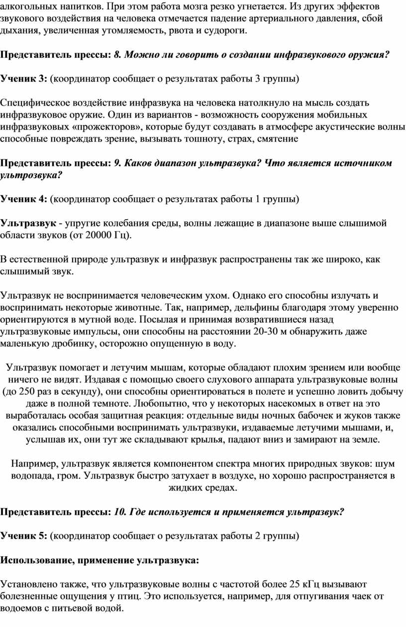 Урок пресс-конференция «Инфразвуковые и ультразвуковые волны» 9 класс