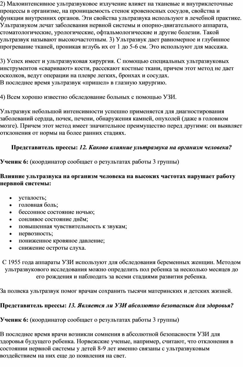 Представитель прессы: 12. Каково влияние ультразвука на организм человека?