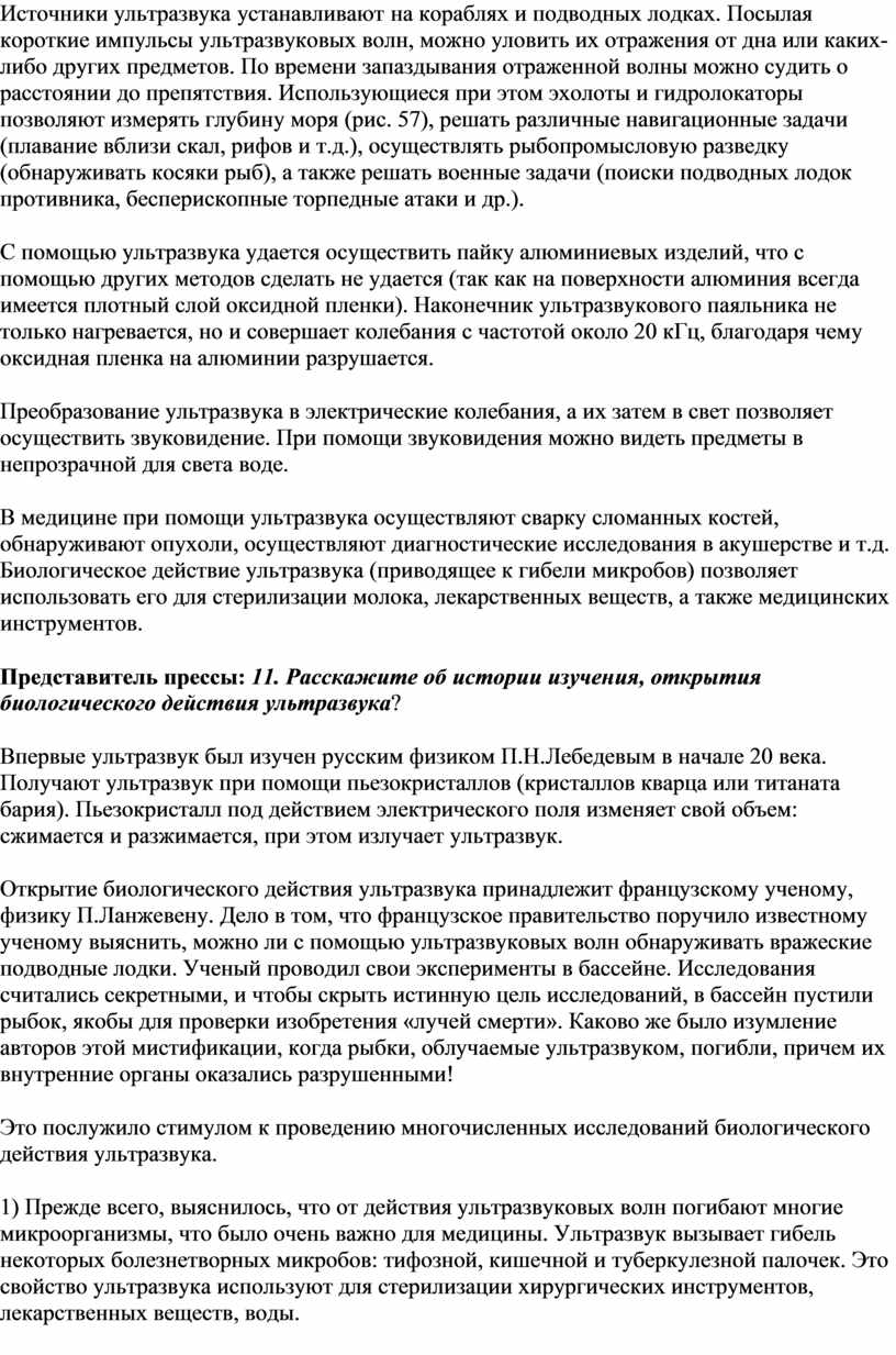 Представитель прессы: 11. Расскажите об истории изучения, открытия биологического действия ультразвука?