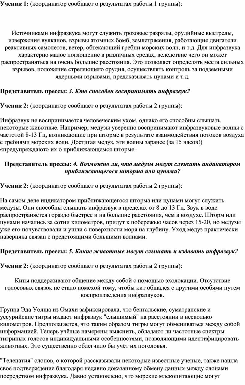 Тема пресс-конференции: «Инфразвуковые и ультразвуковые волны».