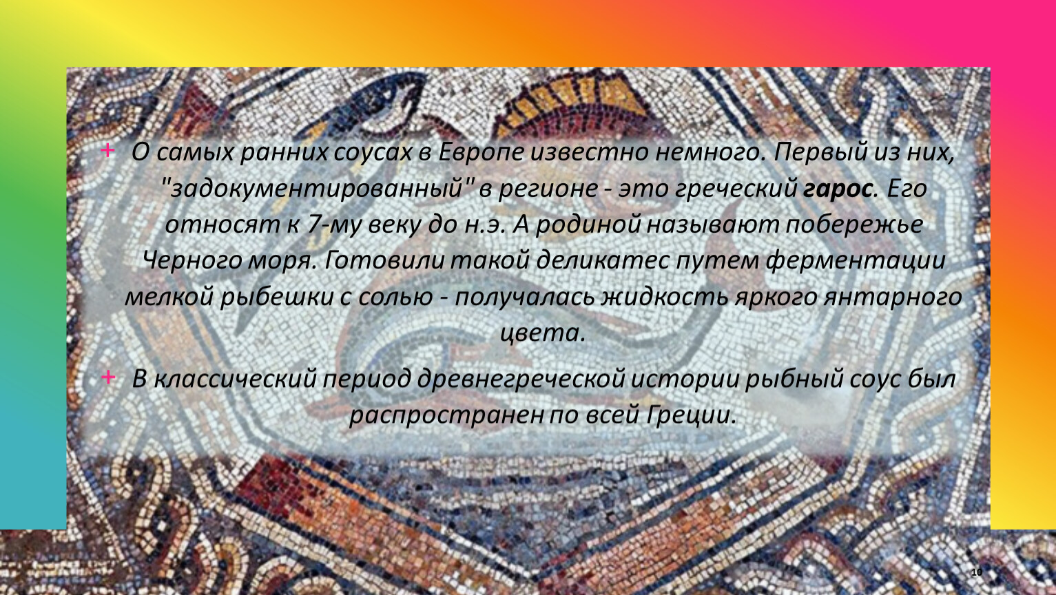 Своего расцвета в древние времена соусы из рыбы достигли в период Римской империи. Было их множество - самых разнообразных вариантов, видов и подвидов. Обобщим:
