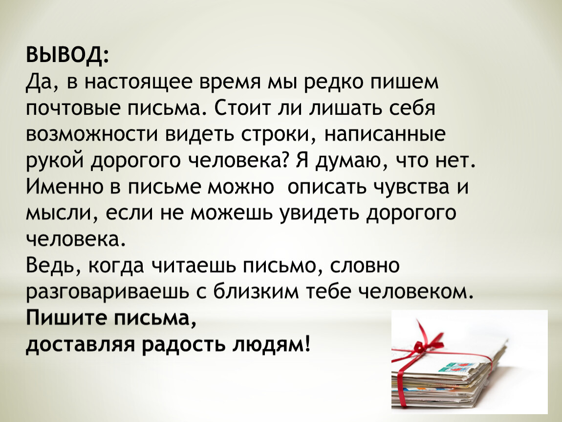 Вывод: роль письма в жизни человека.
