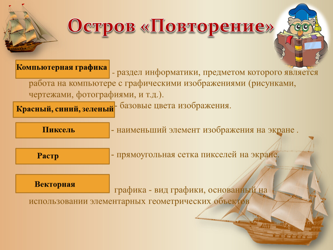 - раздел информатики, предметом которого является работа на компьютере с графическими изображениями (рисунками, чертежами, фотографиями, и т.д.). - базовые цвета изображения.