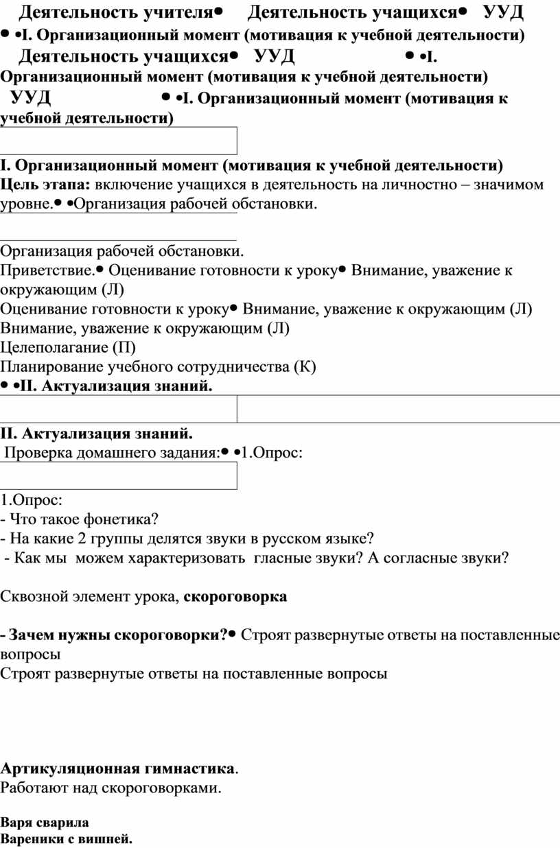 I. Организационный момент (мотивация к учебной деятельности) Цель этапа: включение учащихся в деятельность на личностно – значимом уровне. |