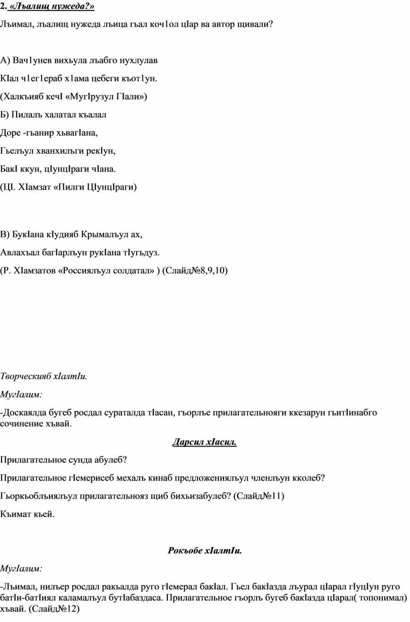 (Р. ХIамзатов «Россиялъул солдатал» ) (Слайд№8,9,10)