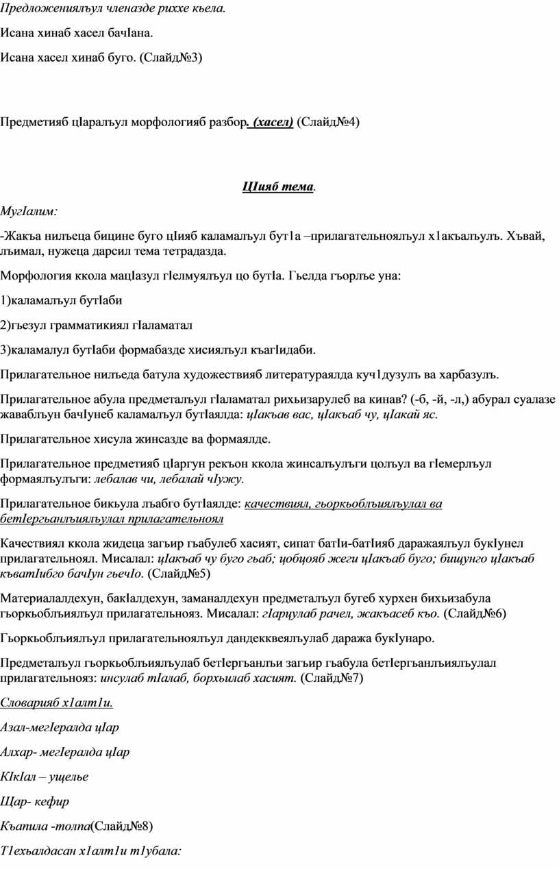 Предметияб цIаралъул морфологияб разбор. (хасел) (Слайд№4)