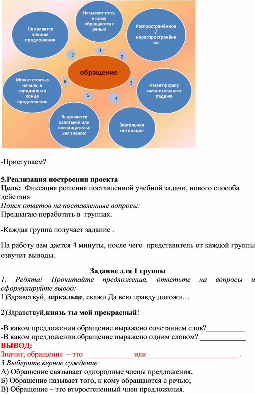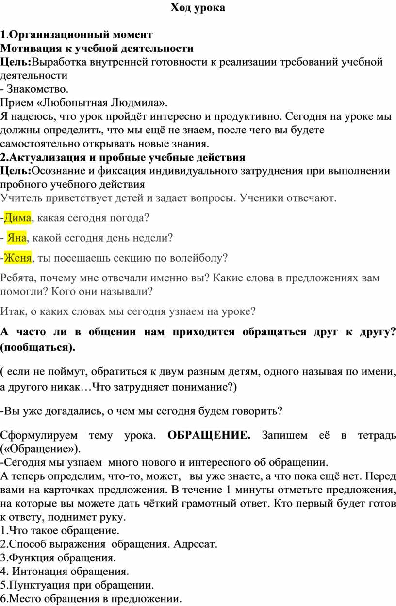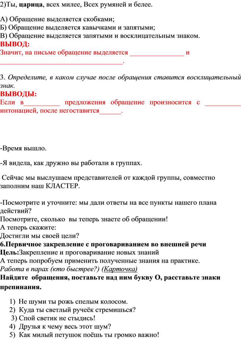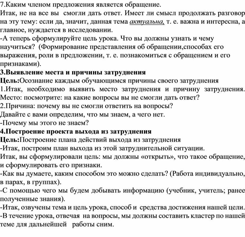 Итак, вы сформулировали цель: мы должны «открыть», что такое обращение, и сформулировать его признаки.