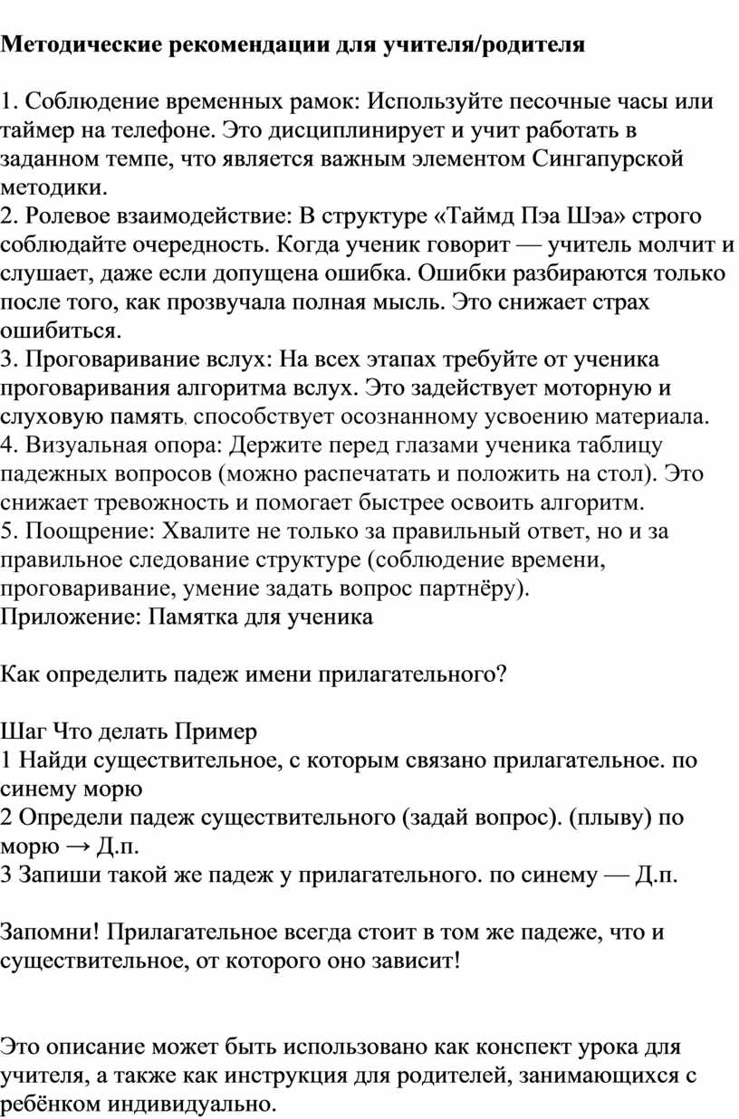 При использовании Сингапурской методики в индивидуальной работе важно сохранить временные рамки (используйте