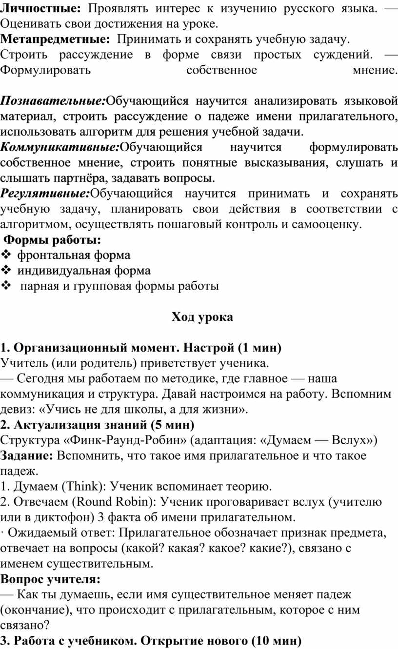 Познавательные:Обучающийся научится анализировать языковой материал, строить рассуждение о падеже имени прилагательного, использовать алгоритм для решения учебной задачи.