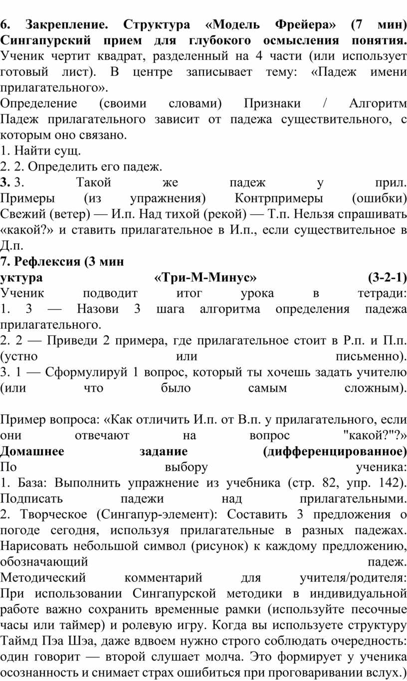 6. Закрепление. Структура «Модель Фрейера» (7 мин)