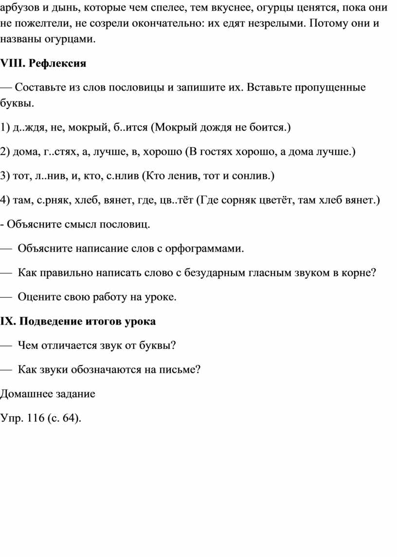VII. Закрепление изученного материала