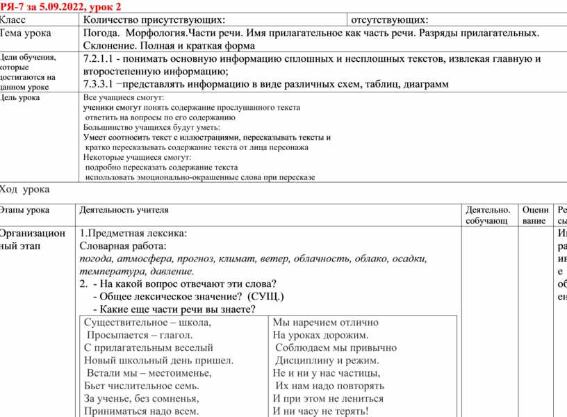 Погода. Морфология.Части речи. Имя прилагательное как часть речи. Разряды прилагательных. Склонение. Полная и краткая форма |