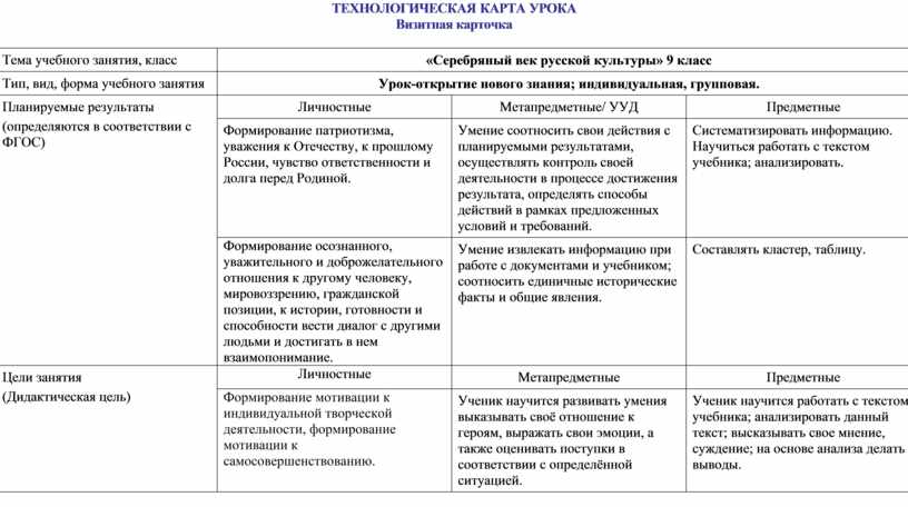 ТЕХНОЛОГИЧЕСКАЯ КАРТА УРОКА