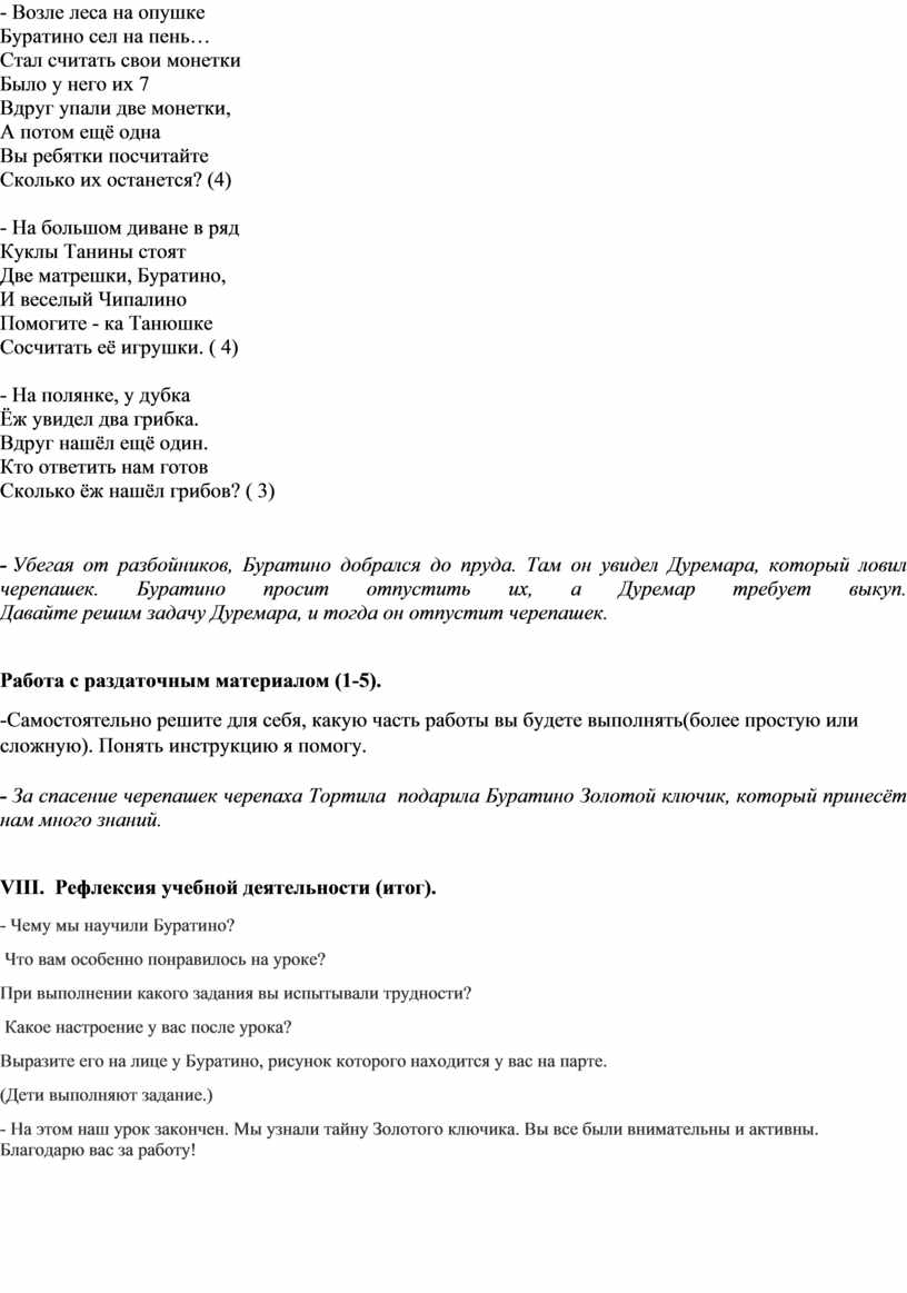 - Вот мы помогли найти Буратино тропинку Он пошел по ней, и она привела его к домику Мальвины. Мальвина пригласила Буратино в гости, напоила чаем и решила проверить его знания по математике. А какую тему выбрала Мальвина узнаем?