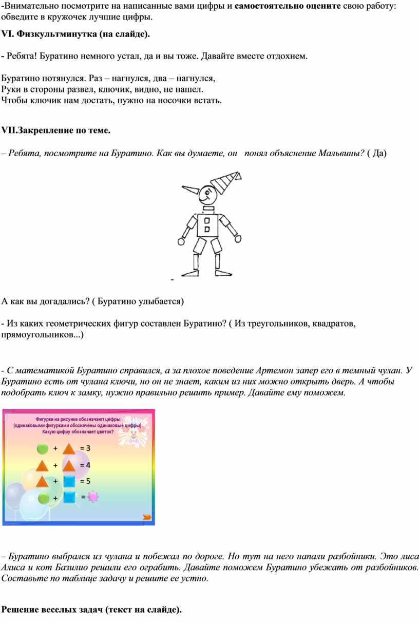 – Ребята, посмотрите на Буратино. Как вы думаете, он понял объяснение Мальвины? ( Да)