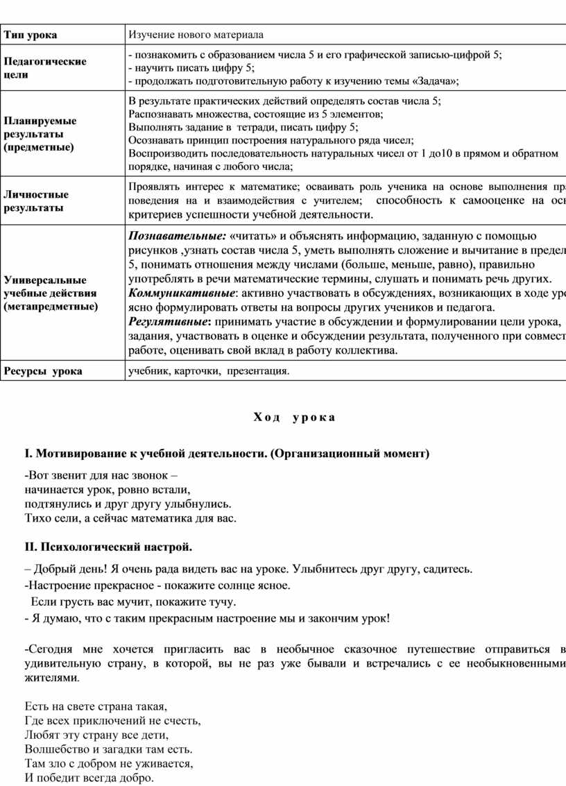 · В результате практических действий определять состав числа 5; · Распознавать множества, состоящие из 5 элементов; · Выполнять задание в тетради, писать цифру 5; · Осознавать принцип построения натурального ряда чисел; · Воспроизводить последовательность натуральных чисел от 1 до10 в прямом и обратном порядке, начиная с любого числа; |