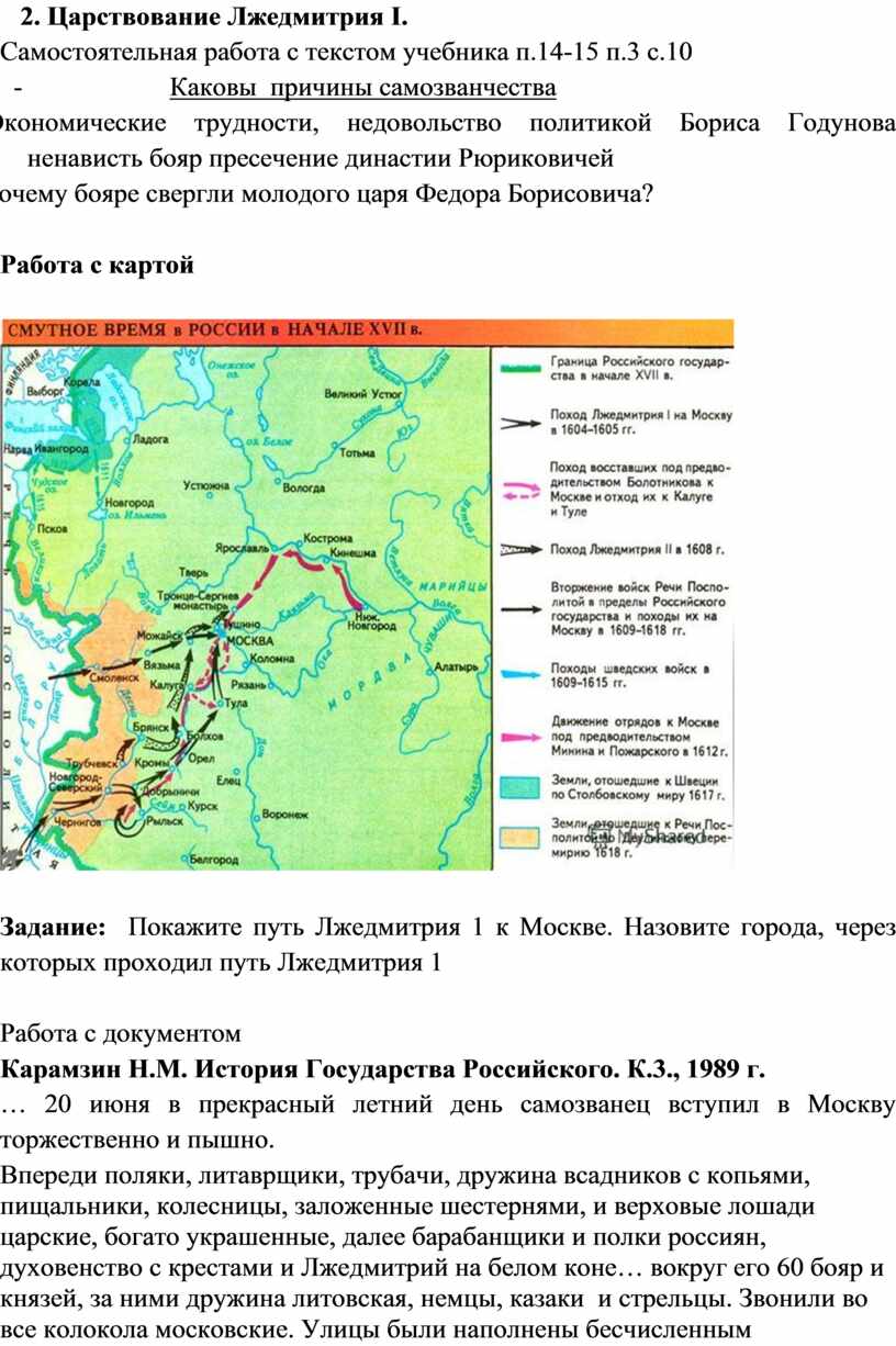 Задание: Покажите путь Лжедмитрия 1 к Москве. Назовите города, через которых проходил путь Лжедмитрия 1