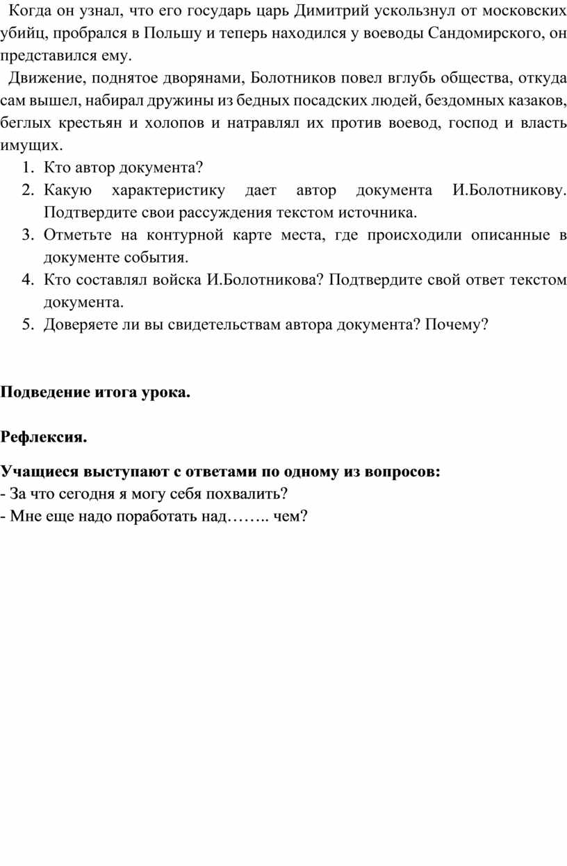 2. Какую характеристику дает автор документа И.Болотникову. Подтвердите свои рассуждения текстом источника.