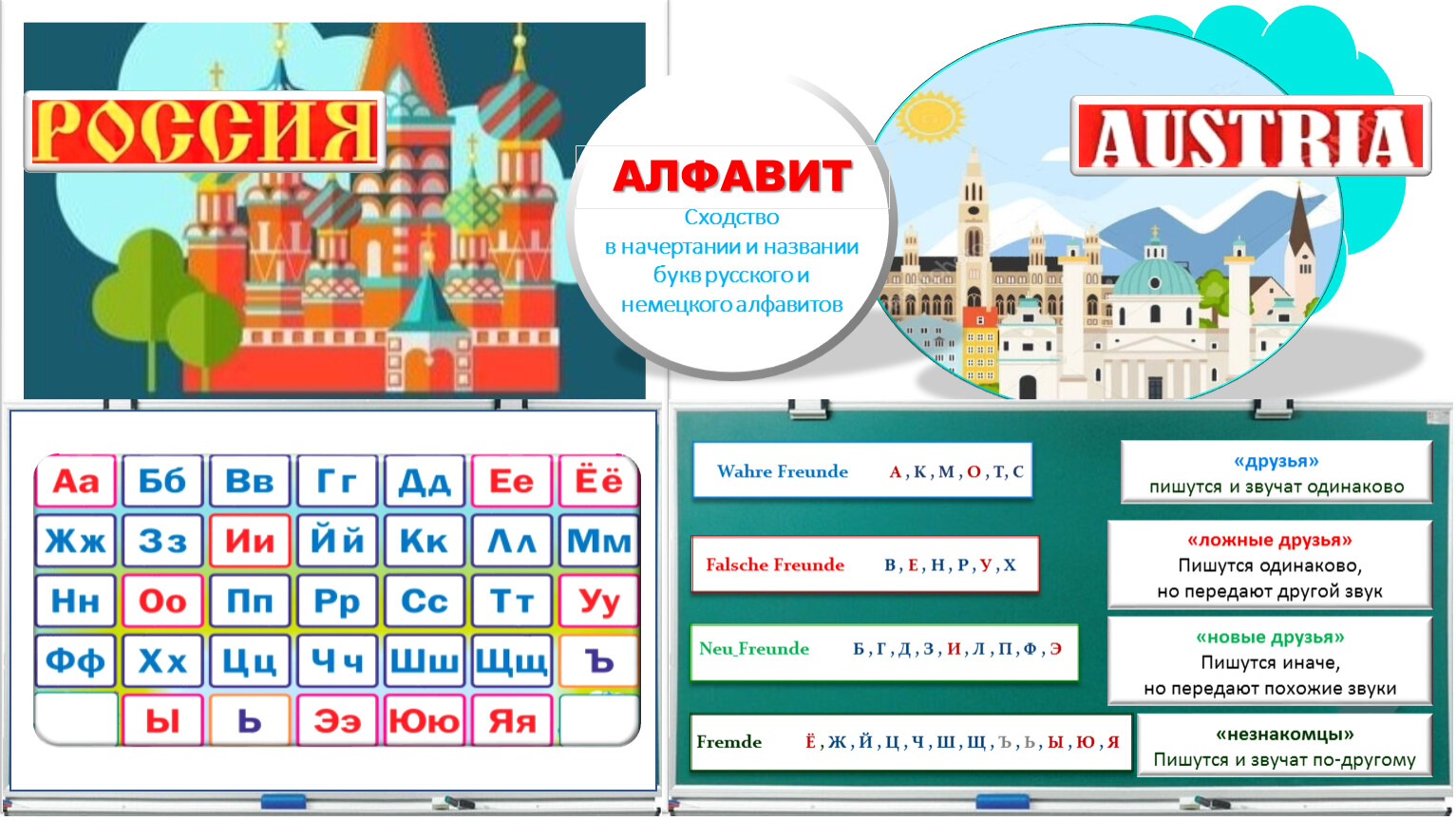 в начертании и названии букв русского и немецкого алфавитов