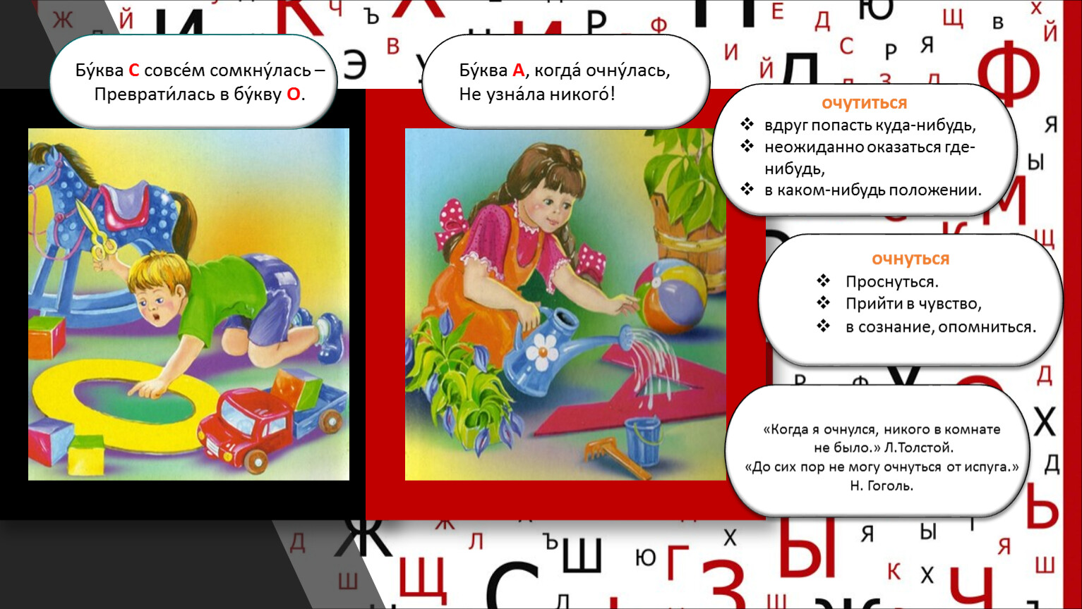 Бу́ква А, когда́ очну́лась,Не узна́ла никого́!