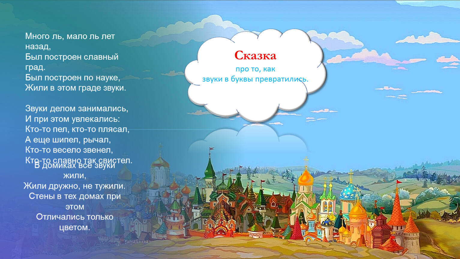 Бу́квы все от А до Я,О́чень дру́жная семья́.Их чуде́сный, у́мный дом,Называ́ют - БУКВАРЁМ.