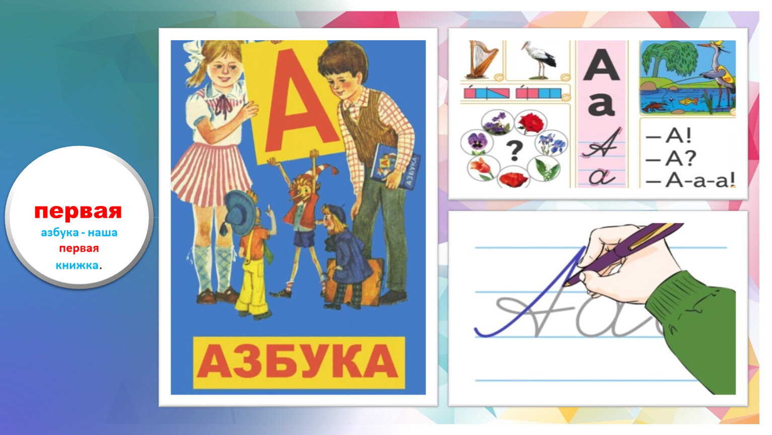Сначала палочки писали,Учили по слогам слова:Вот это дом, а это - мама,А там - зелёная трава...