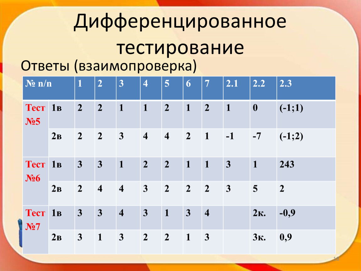Дифференцированное тестирование | min 0 – max 10 |