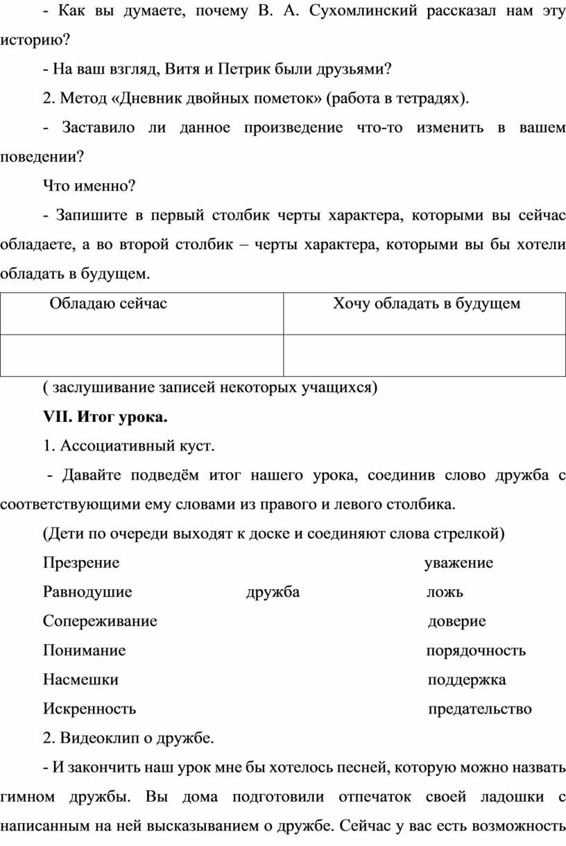 - Сегодня на уроке мы с вами будем говорить о взаимоотношениях между детьми в коллективе, о дружбе, товариществе. Будем размышлять о том, какое значение лично для вас имеет эта тема. Попробуем высказывать своё мнение о проблеме, изложенной в тексте, с которым мы сегодня познакомимся.