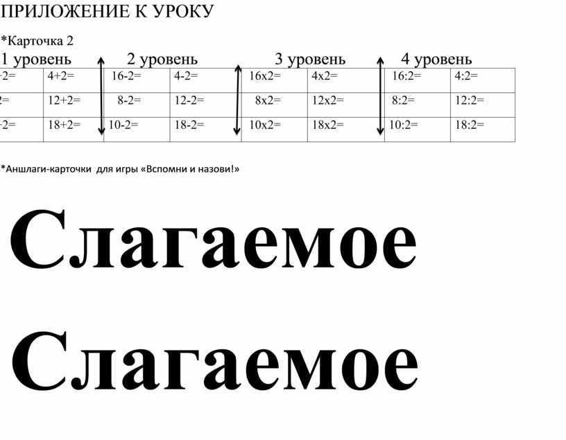Выполнить работу на карточках. (простые выражения разного уровня) - Выполните примеры, находя результат и проговаривая про себя название каждого числа в записи выражения. Выбирайте тот уровень, с которым вы можете безошибочно справиться. - Проверьте свою работу. |
