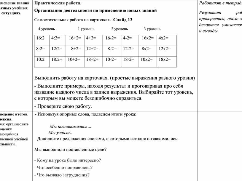 Практическая работа. Организация деятельности по применению новых знаний Самостоятельная работа на карточках. Слайд 13 4 уровень 1 уровень 2 уровень 3 уровень