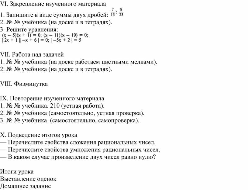 — Сегодня на уроке мы продолжим работать над темой «Свойства действий с рациональными числами».