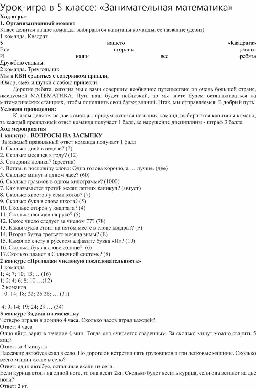 Классы делятся на две команды, придумываются названия команд, выбираются капитаны команд, за каждый правильный ответ команда получает 1 балл, за нарушение дисциплины - штраф 3 балла.