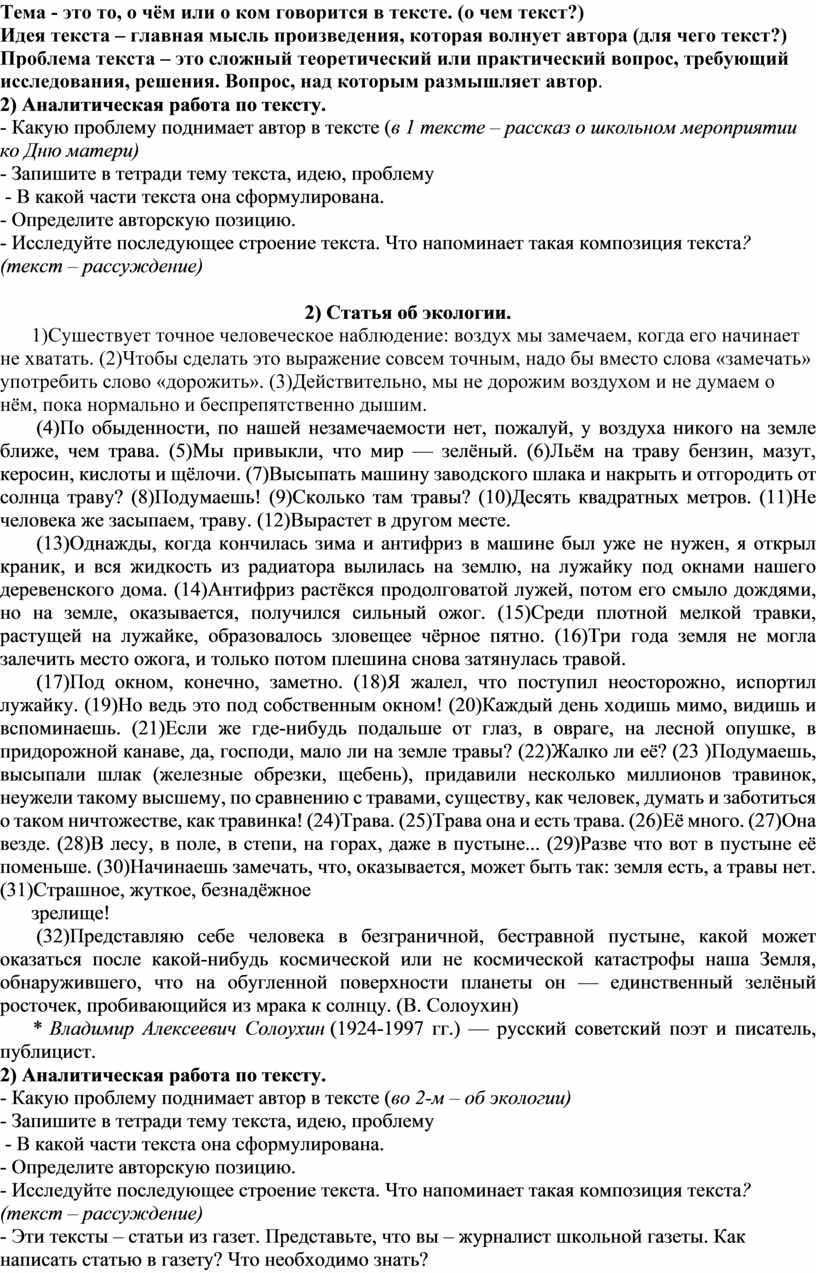 - Какую проблему поднимает автор в тексте (во 2-м – об экологии)