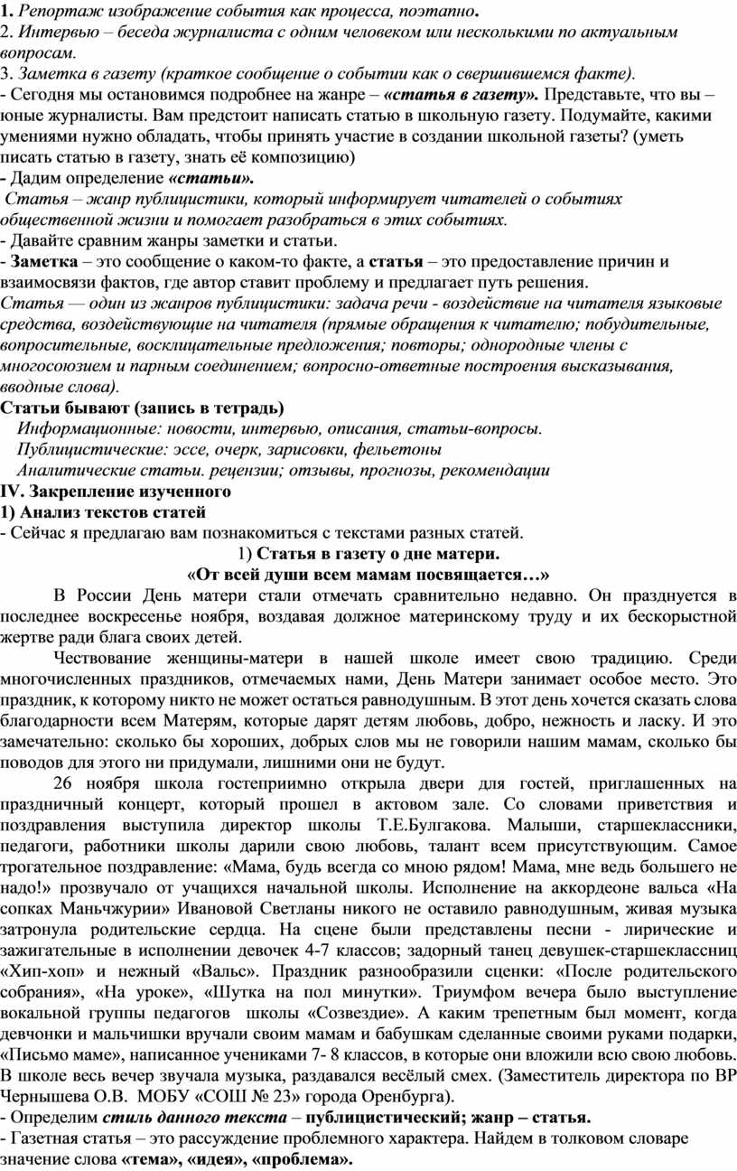 Статья – жанр публицистики, который информирует читателей о событиях общественной жизни и помогает разобраться в этих событиях.