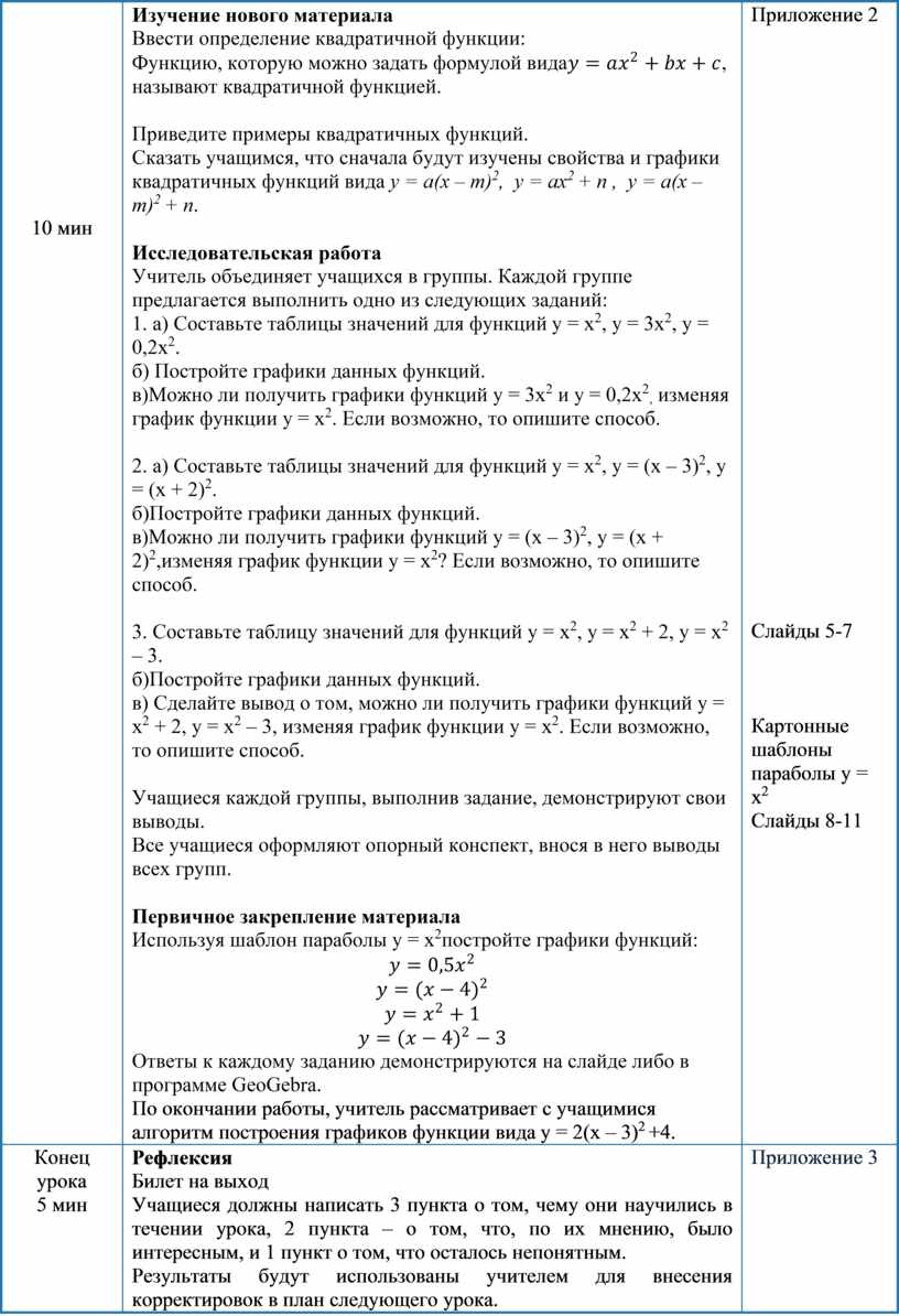 Строить графики квадратичных функций, заданных различным способом. Выполнять преобразования графиков функции. |