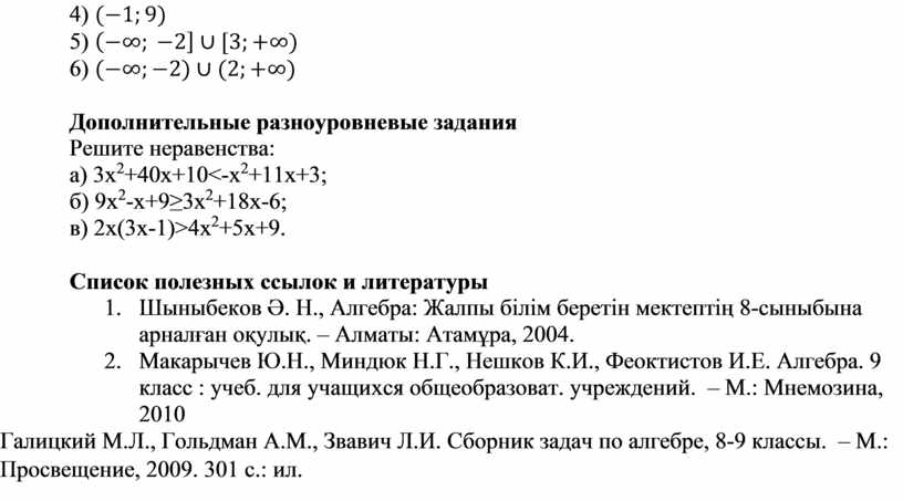 1. Шыныбеков Ә. Н., Алгебра: Жалпы білім беретін мектептің 8-сыныбына арналған оқулық. – Алматы: Атамұра, 2004.