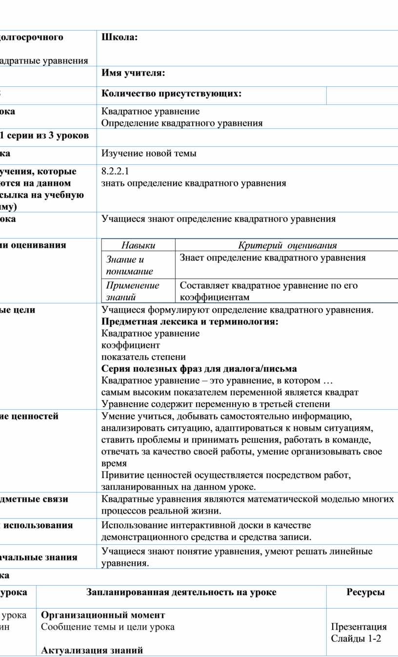 8.2.2.1 знать определение квадратного уравнения |