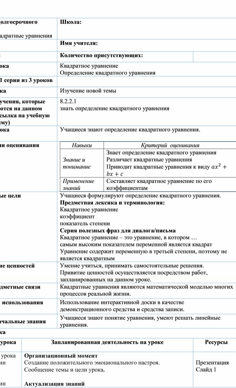 Раздел долгосрочного плана: 8.2A: Квадратные уравнения |