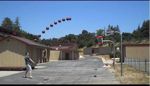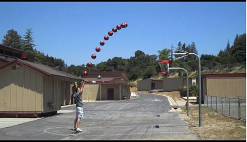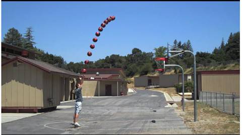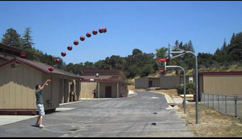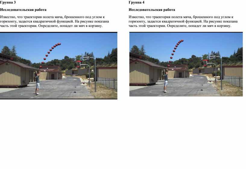 Известно, что траектория полета мяча, брошенного под углом к горизонту, задается квадратичной функцией. На рисунке показана часть этой траектории. Определите, попадет ли мяч в корзину.