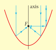 этот процесс. Источник света находится в фокусе параболического зеркала (точке F). Световые лучи попадают в зеркало с углом падения, равным углу